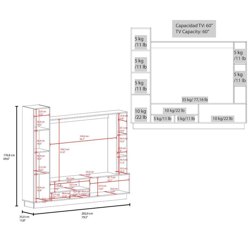 Centro entretenimiento Marsella 176X202X35 RTA Capri Wengue